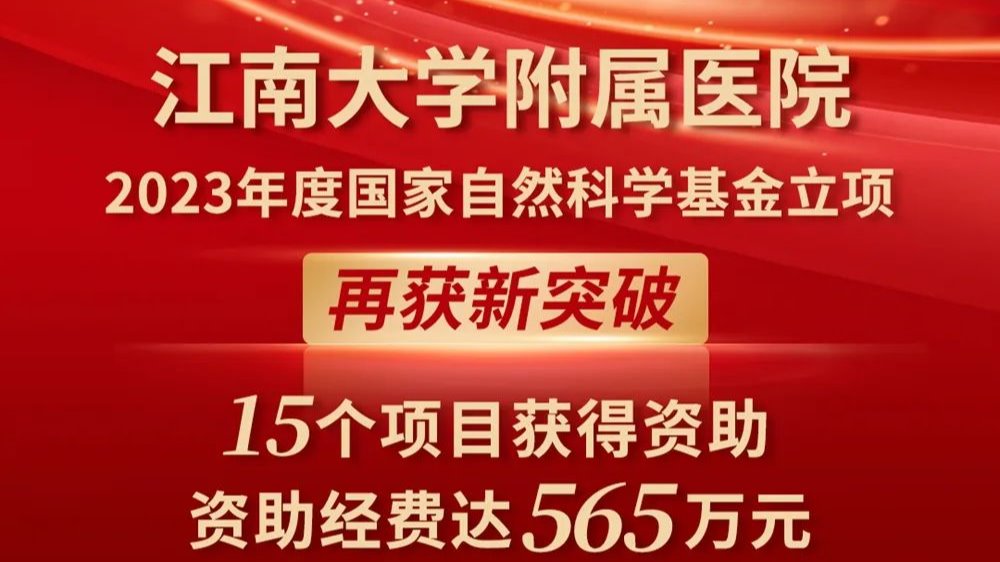2023年8月24日,国家自然科学基金委员会公布2023年度国家自然科学基金申请项目评审结果,鉴黄师 共有15个项目获得资助,其中青年项目9项,面上项目6项,资助经费565万元;立项数与资助金额均创下历史新高,与2022年相比面上项目数翻倍,资助经费增长16.3%,位列无锡市市属医院首位。