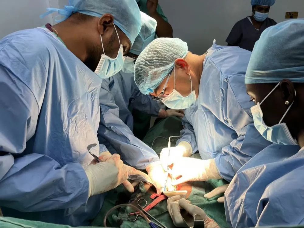 近日,圭亚那乔治敦公立医院普外科中圭医生联手成功救治一名18岁肝刺伤患者。该患者因肝脏遭遇刀刺伤,导致失血性休克,被送至圭亚那乔治敦医院,情况十分危急。医院普外科Team 1团队的迅速响应,为了挽救患者的生命,他们争分夺秒地展开了一场紧急而高难度的手术。