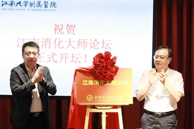 ▲谢寿坤书记和华东院长共同为江南消化大师论坛揭牌